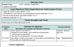 ORS provides reports such as Outcome Results over time, program involvement, income types, family history changes in Federal Poverty Level from intake to current, functional level and referrals. Reports can be run beginning at the individual family member level and then rolled up to the family level, program level, Agency level or the Organizational level.
